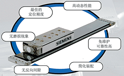 直線電機(jī)的優(yōu)點是直線驅(qū)動、無傳動鏈、無磨損、無反向間隙,所以能達(dá)到最佳的定位精度。直線電機(jī)具有較高的動態(tài)性,加速度可超過2g。采用直線電機(jī)驅(qū)動還具有可靠性高、免維護(hù)等特點。